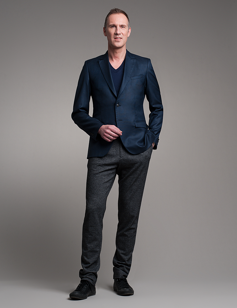 lässig zur ausgewaschenen blauen Chino