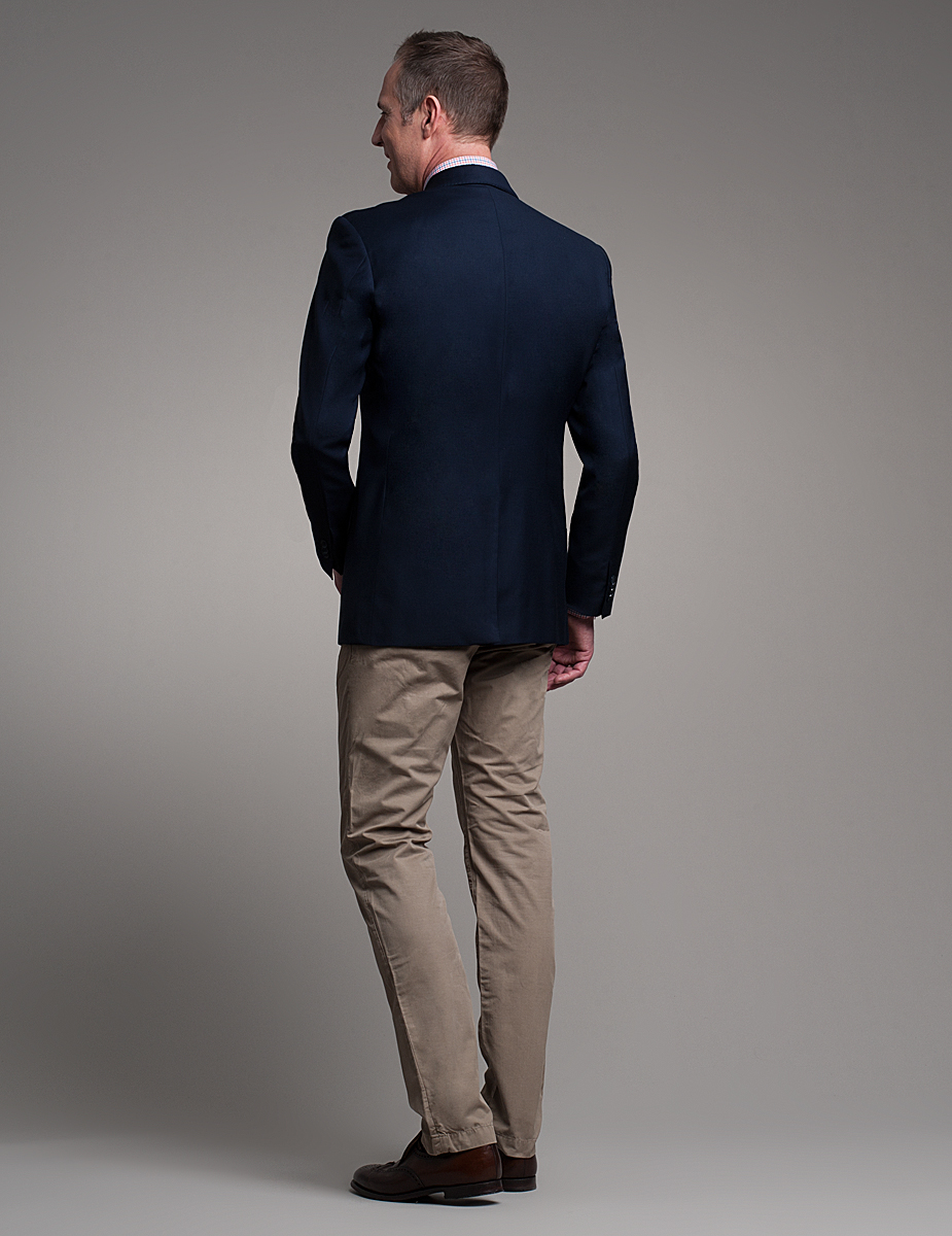 blau-schwarz mit Schalkragen